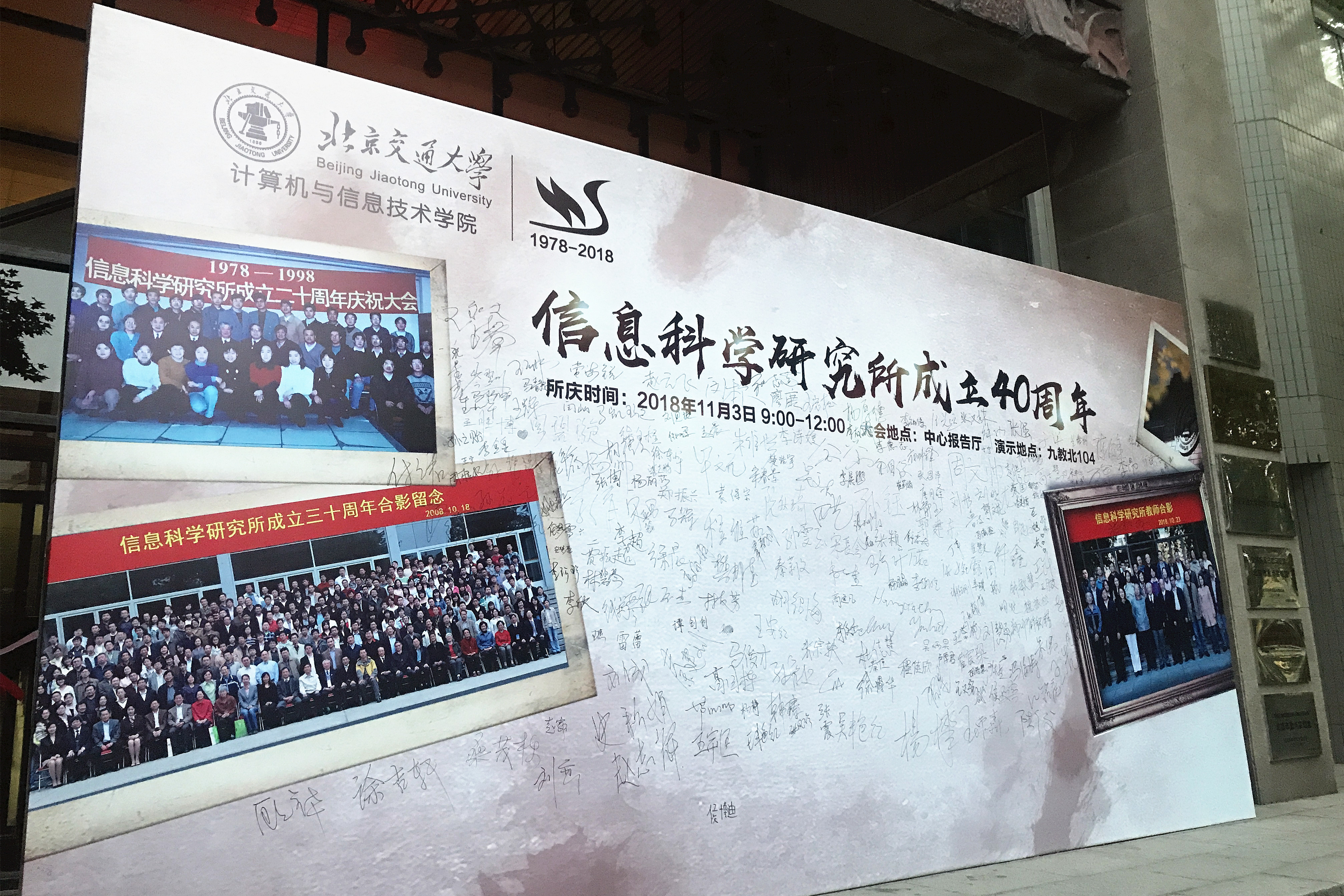 2018年11月3日,彩票平台大全 计算机与信息技术学院信息科学研究所迎来四十华诞,邀请了彩票平台大全 余祖俊副校长、科技处荆涛处长、研究生院李国岫常务副院长、电子信息工程学院唐涛院长、计算机与信息技术学院蔡伯根院长、杨晓晖书记等领导和中央军委联合参谋部第55所樊邦奎院士、美国犹他州立大学承恒达教授及毕业校友、在校师生等三百余人,在中心报告厅共同参加这一庆典活动。