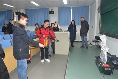 随后,校保卫处王会剑老师对全体师生进行消防安全培训,系统介绍了学校安全管理规定和消防安全隐患,提师生高消防安全意识,增强其自救逃生技能,并进行灭火器使用培训。现场师生纷纷实际操作,每人都使用电子灭火器模拟灭火,掌握灭火器的使用。