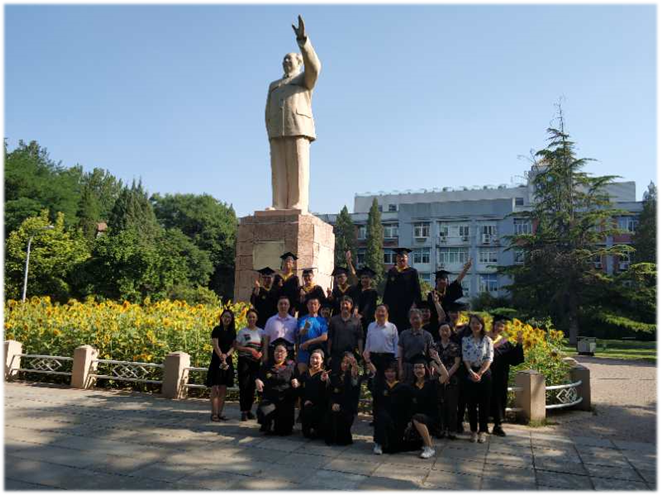 第二项是毕业生与教师合影留念,同学们穿上学士服、理正学士帽,来到了九教北大门毕业生寄语横幅前进行集体合照。随后是自由拍照,同学们纷纷与自己喜爱的老师进行合照,并对老师表达三年来的感激之情,灿烂的笑容正如盛放的向日葵,光彩夺目!