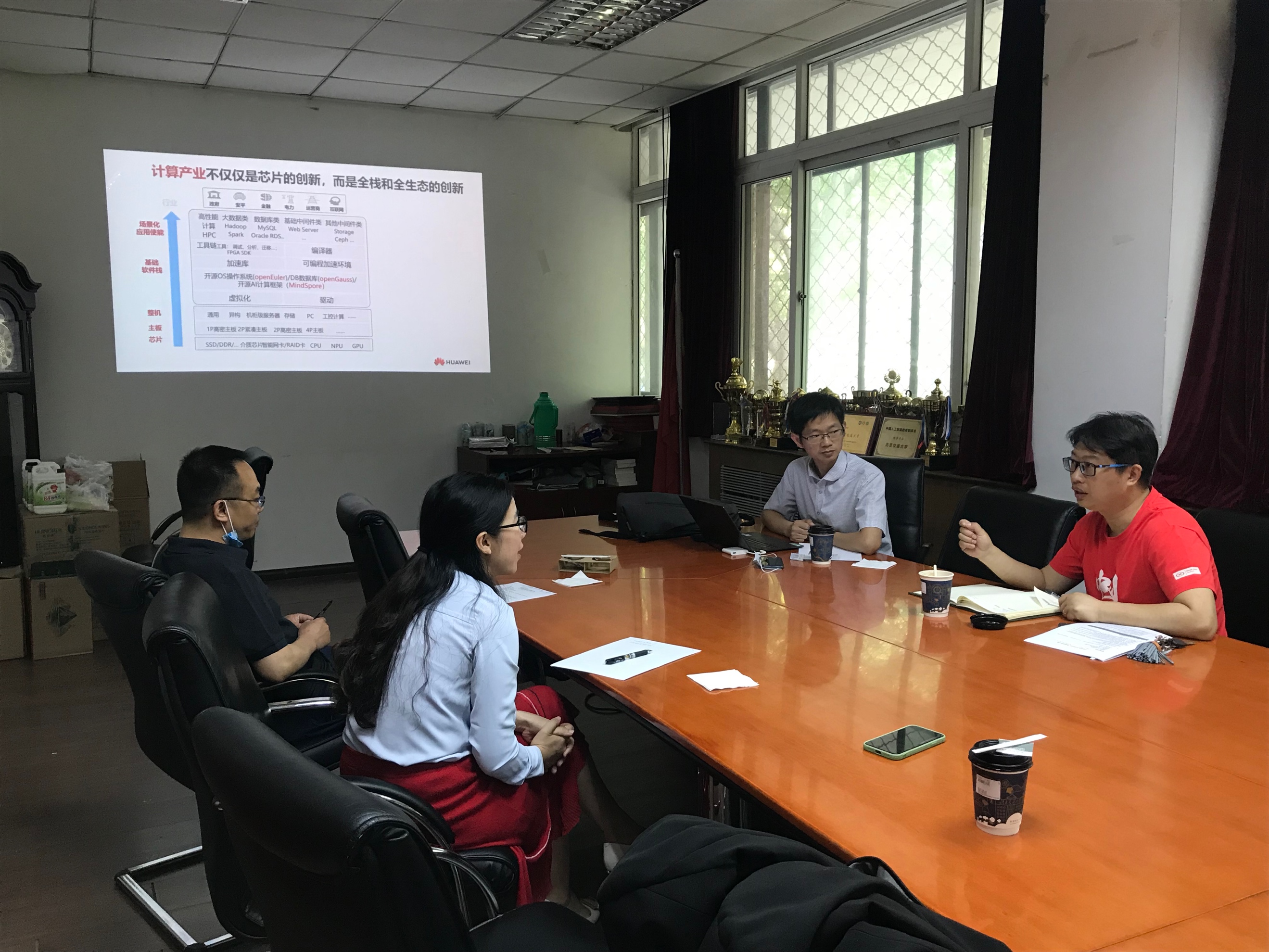 5月21日上午在彩票平台大全 会议室,彩票平台大全 与华为公司举行“智能基座”产教融合项目落地研讨会。参加会议的有彩票平台大全 教学副院长熊轲、“专业实习与实训”课程负责人安高云,华为计算产品线资深人力资源经理李春梅、华为鲲鹏总工李国军。