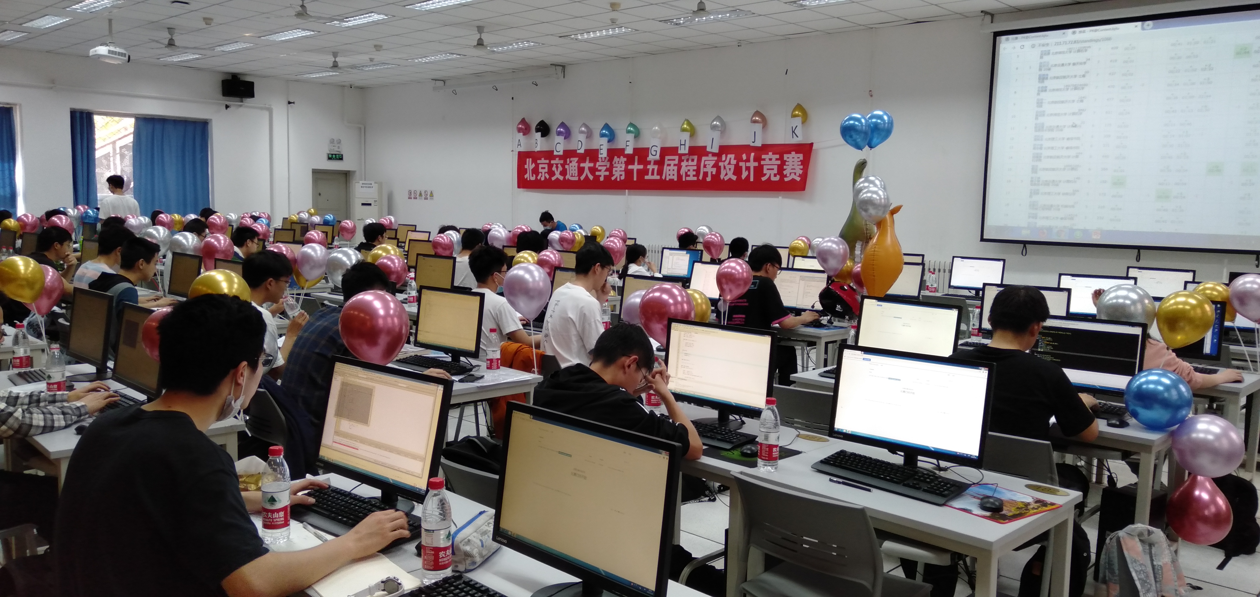 2021年5月16日13:00-18:00,由北京交通大学大学生程序设计竞赛组委会主办、计算机与信息技术学院承办的彩票平台大全 第十五届大学生程序设计竞赛现场赛在主校区逸夫楼二层机房、东校区实验中心机房以及威海校区机房同时开展。本次比赛面向全校本科同学,首次开启了一校三区办赛的新模式。