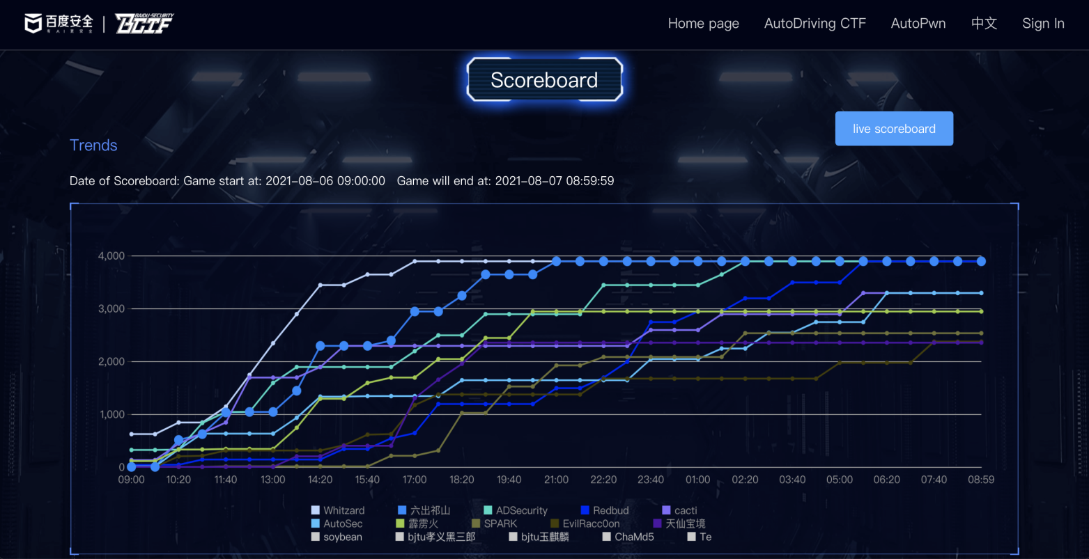 图2. DEF CON 29 Contest AutoDriving CTF大赛解题得分TOP10