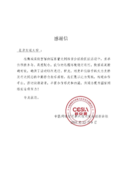 彩票平台大全 信安团队参与国家重大网络安全试验测试活动获感谢信