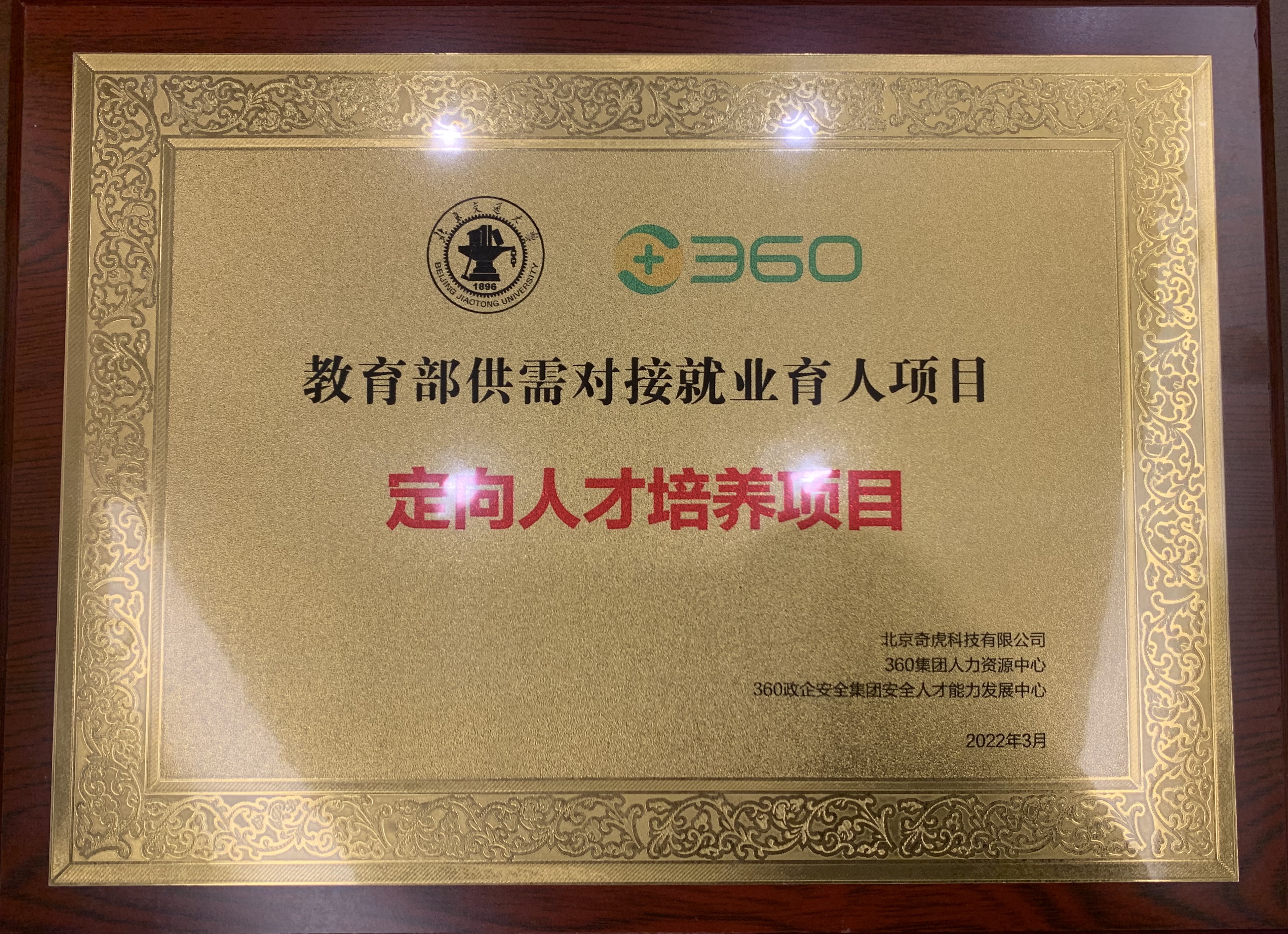 教育部高校学生司2021年首次实施供需对接就业育人项目,彩票平台大全 与360公司合作设立定向人才培养项目—北京交通大学信息安全专业人才培养和实践能力提升项目,面向大三大四学生进行专业实训课程培养,合办网络安全攻防特色定向人才培养班。