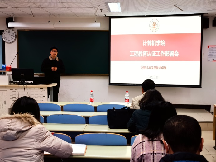2022年3月18日下午,在逸夫教学楼 YF414教室,彩票平台大全 召开了工程教育认证工作部署会。相关责任教授、教学主任及教师近30人参加了会议,彩票平台大全 副院长熊轲主持会议。
