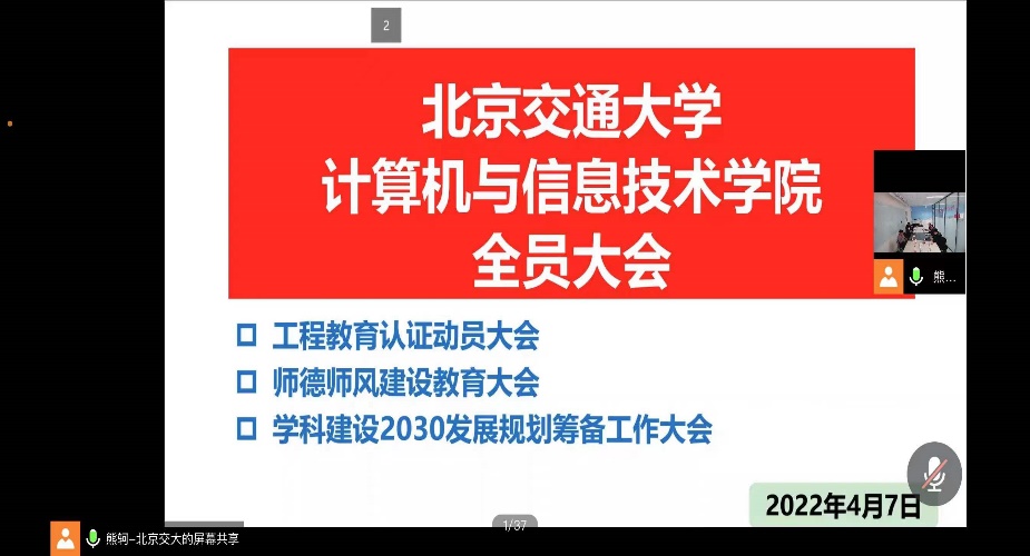 4月7日下午,为深入推进学院专业认证工作,彩票平台大全 在逸夫楼101会议室召开工程教育专业认证动员大会。会议由副院长熊轲主持,院长蔡伯根、党委副书记段春荣、韦世奎,副院长李浥东、景丽萍出席会议,彩票平台大全 全体教职工线上参加会议。