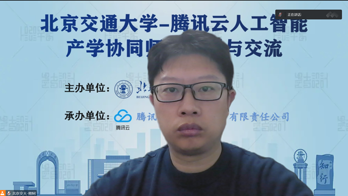 熊轲副院长代表学院进行了致辞,他首先对本次大会的组织人员和参与教师进行了感谢。他表示国务院从2020年印发了新一代人工智能发展规划,明确了我国新一代人工智能发展的战略目标,以及2025年到2030年整个人工智能行业的发展规划。目前随着国家战略的推进和人工智能行业的发展,对相关人才需求猛增。要满足国家和市场对人工智能领域人才需求的预期,就必须培养高质量的人工智能专业人才,实现这一目标的核心是对人工智能领域的师资进行补充和培训。为此,北京交通大学计算机与信息技术学院联合腾讯云(北京)科技有限公司联合筹划了本次人工智能协同育人的师资培训与学术交流活动,目的是通过校企的强强联合,充分发挥双方优势,能够使更多的老师通过这次活动对人工智能专业相关课程和技术能够有更深入的了解,帮助推进高校人工智能领域师资的成长与建设。最后,熊院长预祝此次活动能够圆满成功。